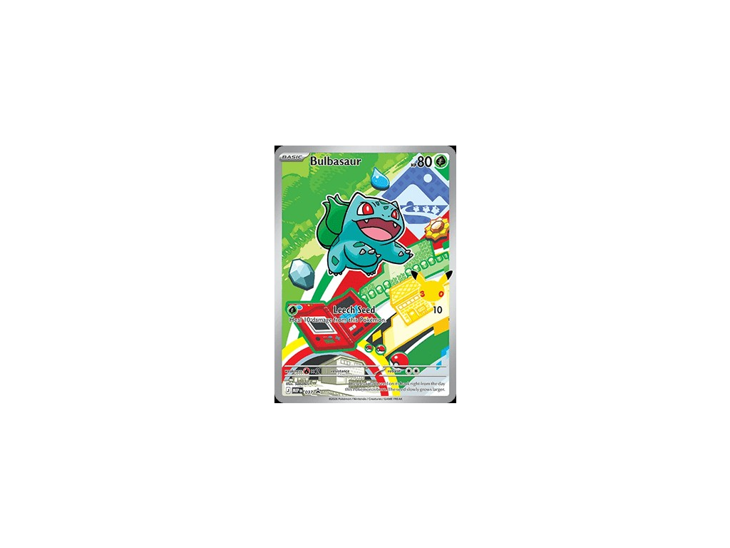 Karta Bulbasaur MEP 037 patří mezi speciální promo karty vydané v rámci série Mega Evolution Promos. Tento ikonický starter Pokémon z první generace zaujme především svým Illustration stylem a detailním artworkem, který je součástí větší sběratelské série.