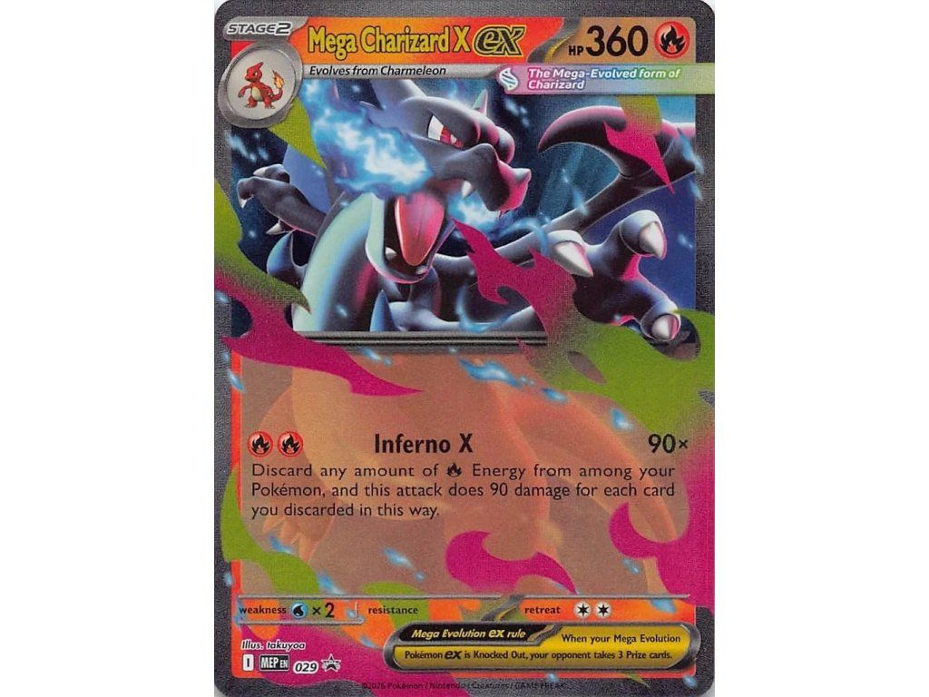 Karta Mega Charizard X EX Promo 029 patří mezi velmi atraktivní promo karty s ikonickým Pokémonem Charizardem v jeho Mega evoluci. Díky svému výraznému designu a popularitě patří mezi vyhledávané kousky pro sběratele.