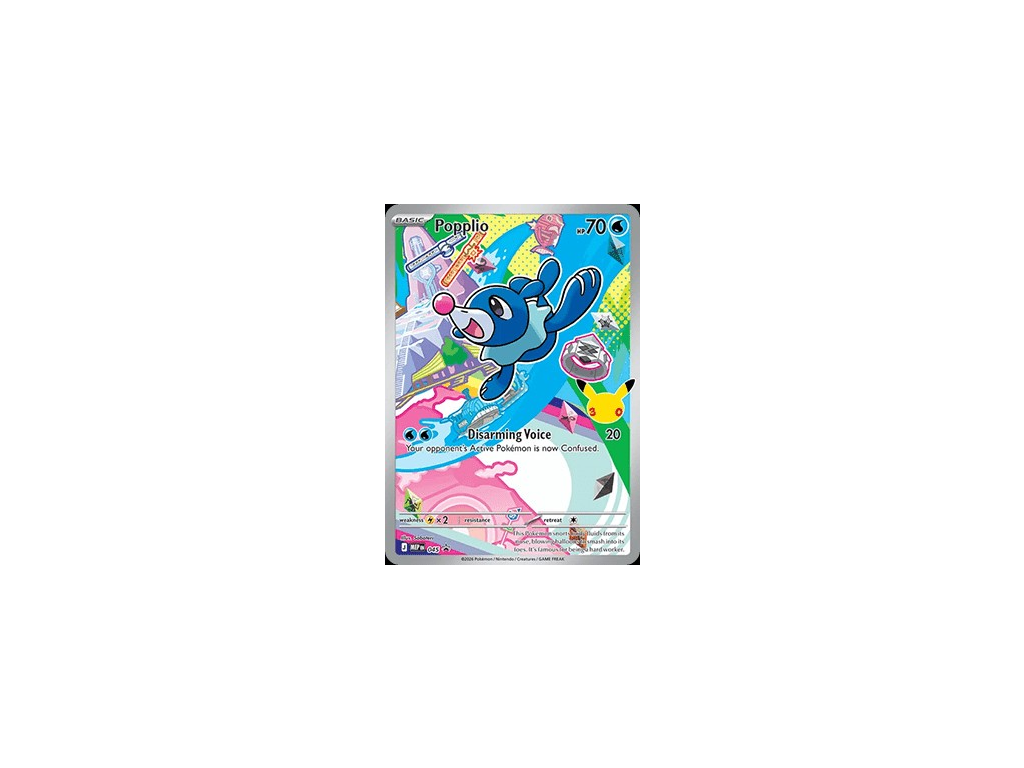 Karta Popplio MEP 045 patří mezi speciální promo karty vydané v rámci série Mega Evolution Promos. Tento starter Pokémon z regionu Alola zaujme především svým Illustration stylem a detailním artworkem, který je součástí sběratelské série k 30. výročí Pokémon TCG.